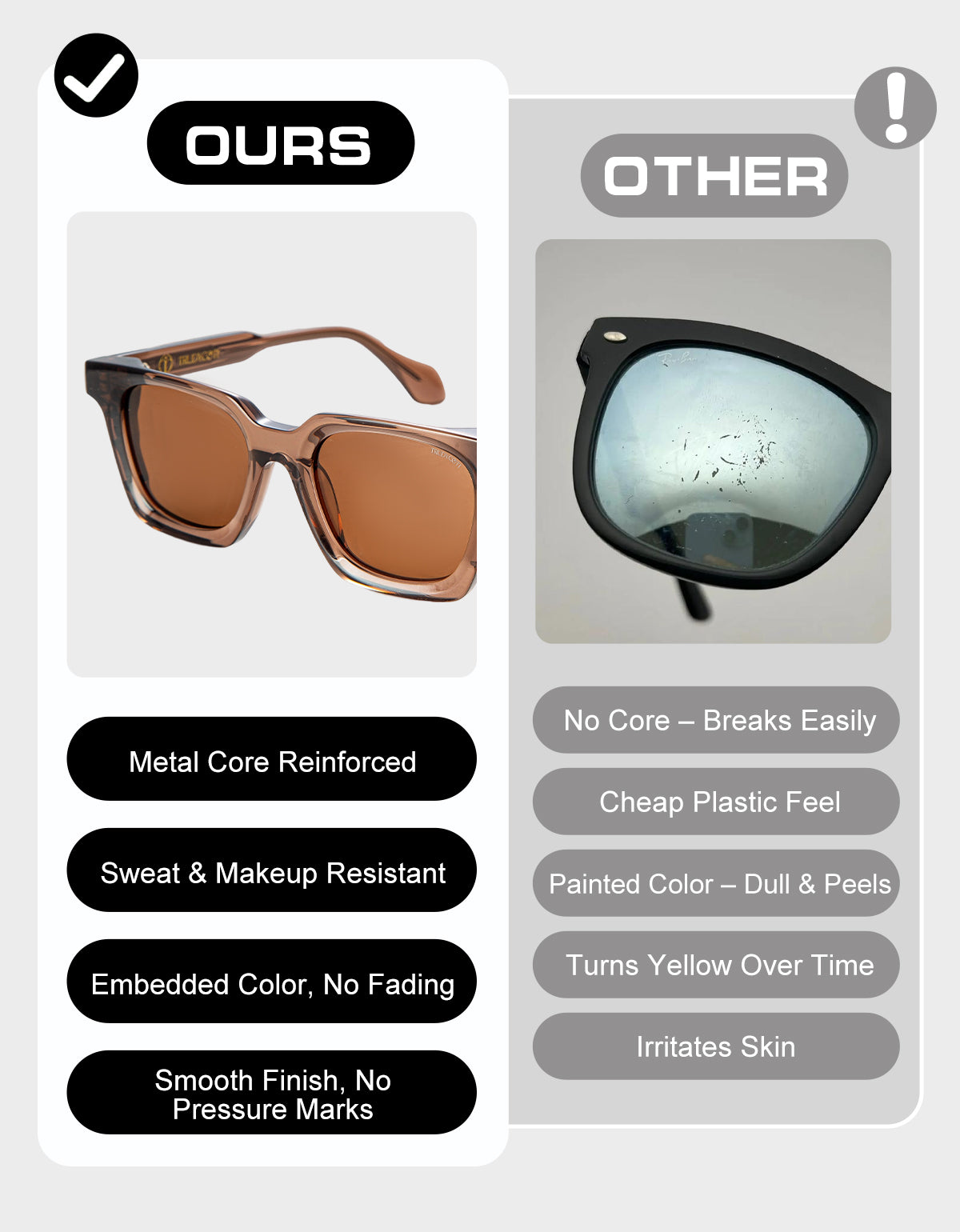 A: We get it — most sunglasses don’t last beyond a season. We wanted to fix that. Our frames are built with quality materials, designed with taste, and priced with fairness. No compromises — just good sunglasses that look and feel great.