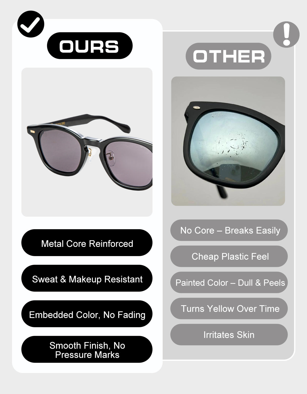 A: We get it — most sunglasses don’t last beyond a season. We wanted to fix that. Our frames are built with quality materials, designed with taste, and priced with fairness. No compromises — just good sunglasses that look and feel great.